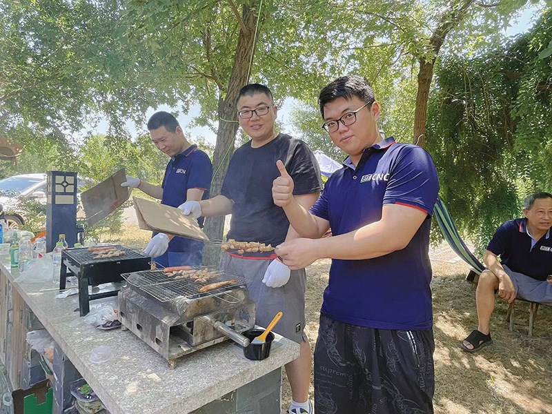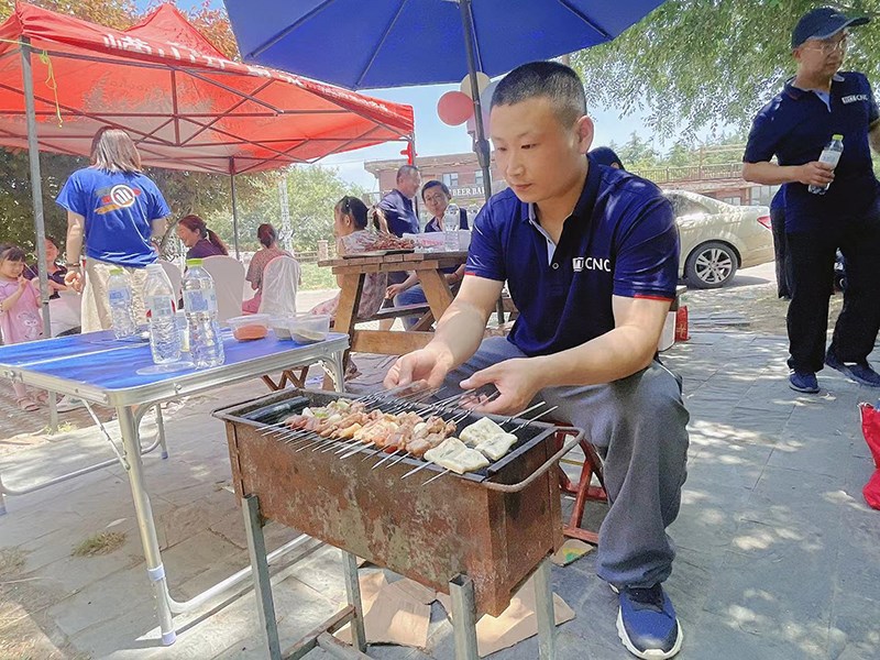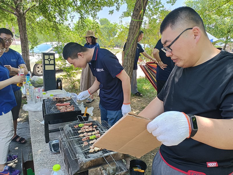 男士們自告奮勇,主動承擔起燒烤工作,從他們的熟練程度可以看出,他們在家一定沒少為家人們下廚做飯。我們公司的男士們真是上得廳堂,下的廚房的五好男生啊。