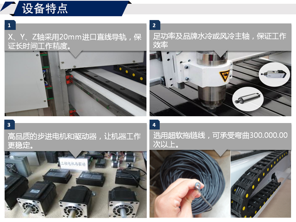 4.24000rpm水冷主軸,穩(wěn)定工作的同時能讓木工加工工作更長久;