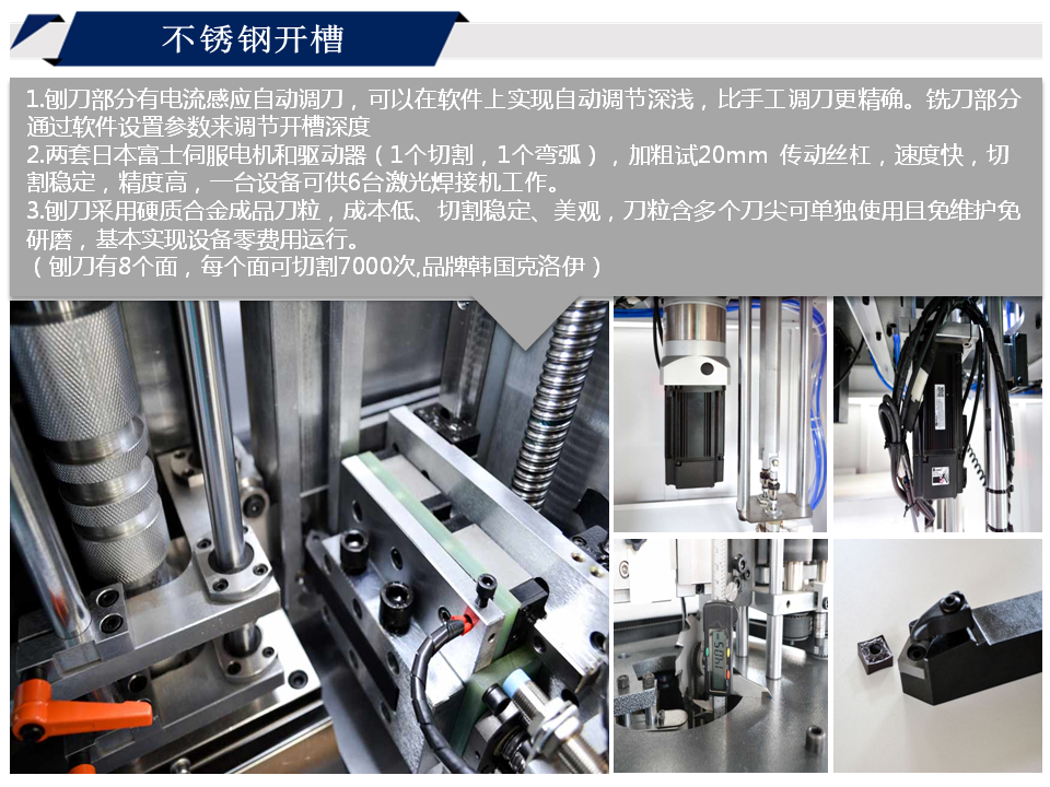 2.兩套日本富士伺服電機(jī)和驅(qū)動器(1個切割,1個彎弧),加粗試20mm 傳動絲杠,速度快,切割穩(wěn)定,精度高,一臺設(shè)備可供6臺激光焊接機(jī)工作。