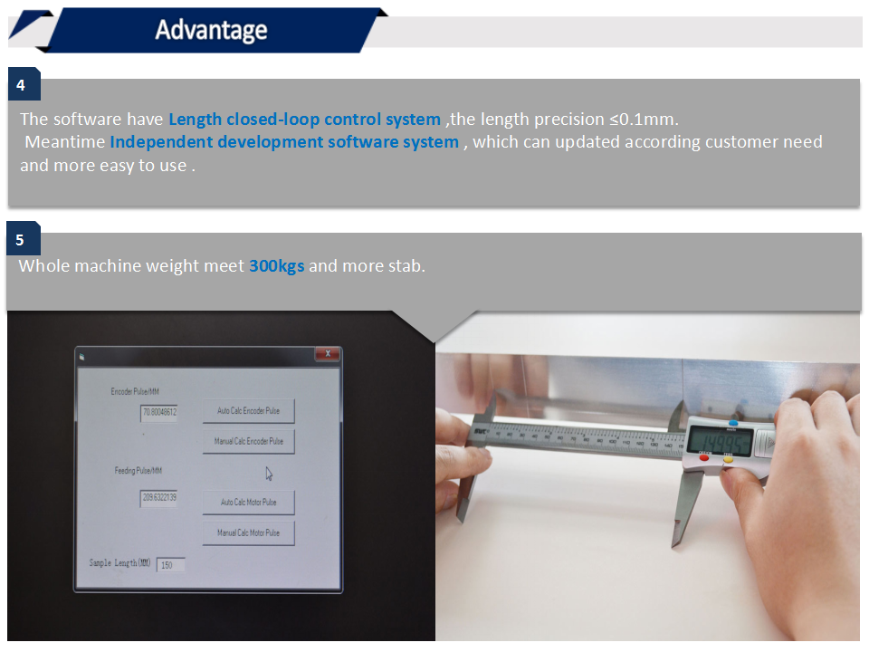 5、帶有長度閉環(huán)控制系統(tǒng),長度精度軟件控制,誤差≤0.1mm。并且軟件自主開發(fā),可根據(jù)客戶需求進(jìn)行更新。