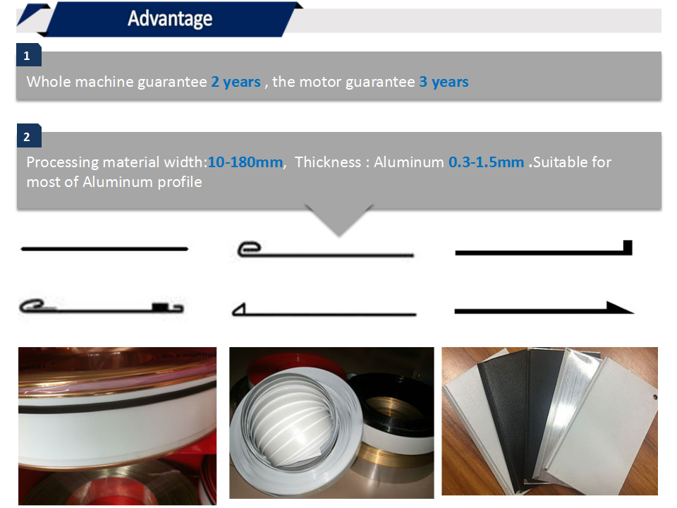 整機(jī)特點1、整機(jī)質(zhì)保兩年,電機(jī)三年。(不包括皮帶,不銹鋼切割刀頭,感應(yīng)開關(guān)和繼電器)2、加工材料高度10-160mm , 鋁板厚度0.3-1.5mm3、機(jī)器內(nèi)部的加工件和板材全部鍍硬鉻...
