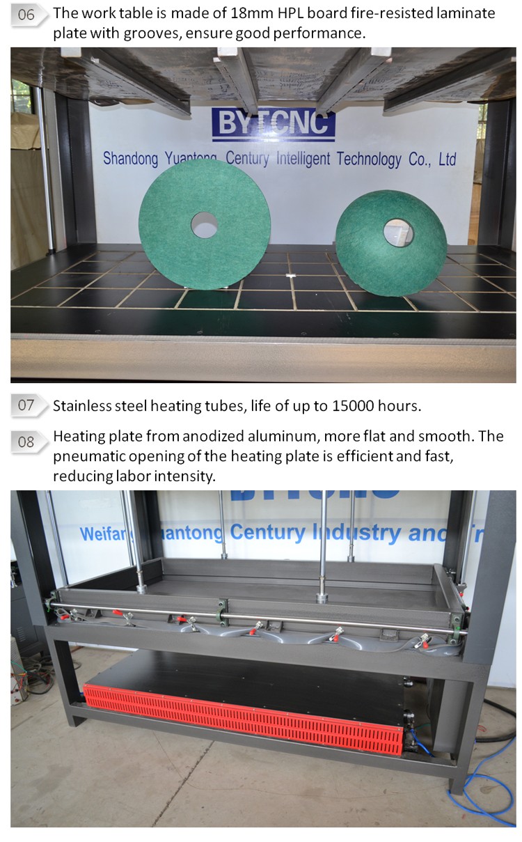 4.工作臺(tái)面采用18mm HPL耐火板,保證良好的平整度,工作臺(tái)面加工槽溝,使用壓力均勻分布在工件的每個(gè)位置;